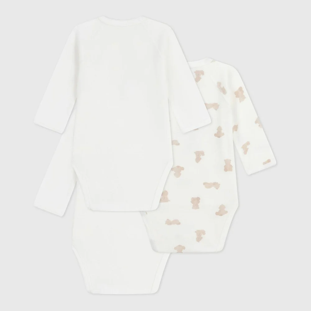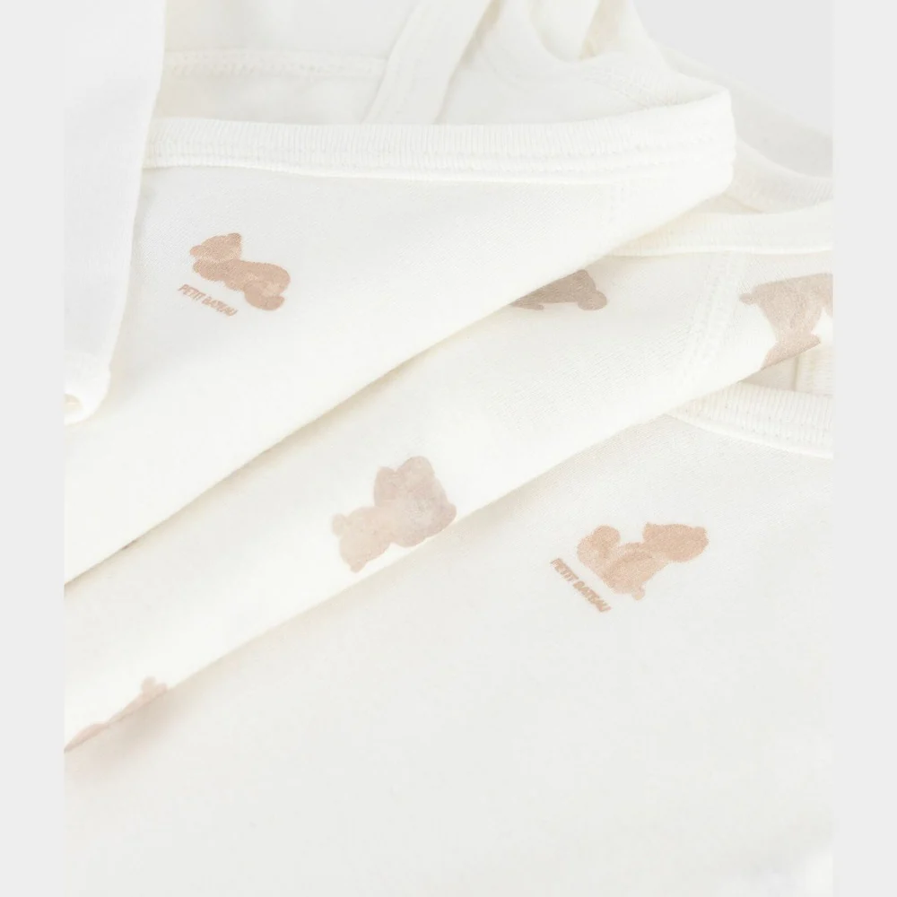- Deze set bevat een rompertje met beerprint en twee effen rompertjes met zeefdruk.