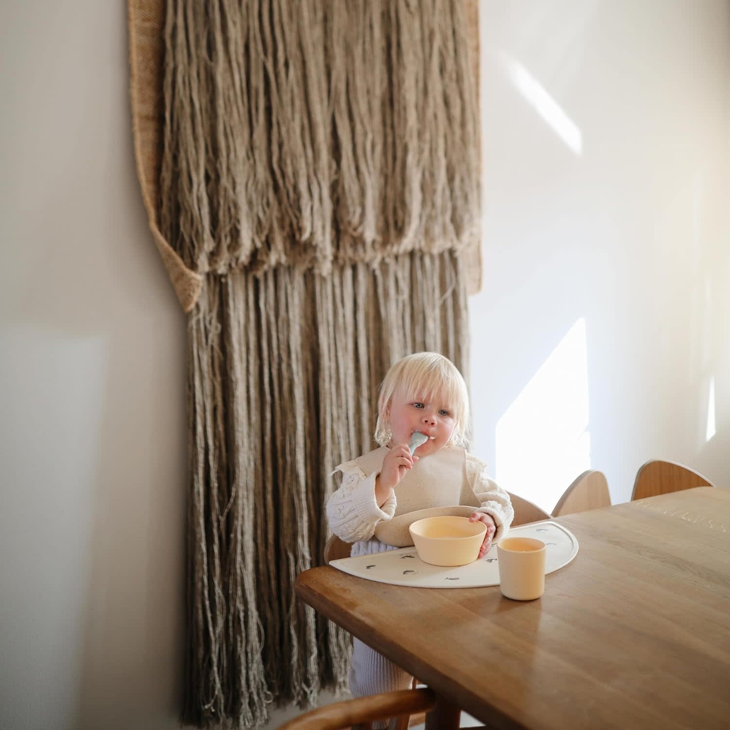 Eerste stap naar zelfvoeding: Mushie starterlepels voor peuters zijn de perfecte metgezel voor de reis van uw kleintje naar zelfstandig eten. Aanbevolen voor kleintjes vanaf 12 maanden.