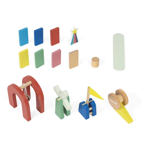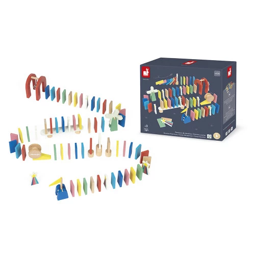 Account aanmakenBouwen, omverwerpen en opnieuw beginnen! Ontdek een dominobaan van 100 kleurrijke houten stukken, waarmee kinderen vanaf 3 jaar hindernisbanen kunnen bouwen en hun fantasie de vrije loop kunnen laten. Bel, brug, windmolen, spoel... kinderen hebben alles wat ze nodig hebben om spectaculaire parcoursen te creëren en steeds fantasierijkere routes te bedenken. Dit spel staat garant voor plezier en gelach met familie en vrienden! Kinderen leren bouwen, testen, aanpassen... en vooral verwonderen wanneer alles precies volgens plan instort! Een geweldige leerervaring die kinderen laat zien dat elke actie gevolgen heeft. Het bouwen van deze dominobaan vereist ook geduld om het einddoel te bereiken: alle stukken omverwerpen! Het spel is gemaakt van FSC™-gecertificeerd hout.