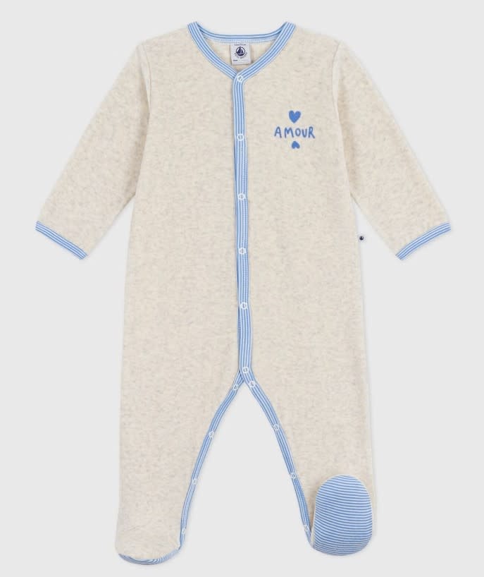 - De pyjama sluit met drukknoopjes aan de voorzijde en het kruis.