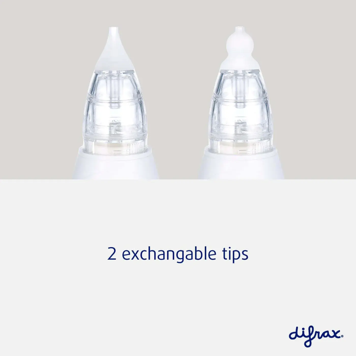 Account aanmakenDe Elektrische neusjesreiniger van Difrax maakt de neus van je kindje in een paar seconden schoon en zorgt ervoor dat je kindje weer vrij kan ademen. De set bevat 2 zachte, verwisselbare siliconen tips: smal, voor gebruik bij kleine kindjes of loszittend, vloeibaar slijm, en breed voor wat grotere kindjes of vastzittend, dikker slijm.