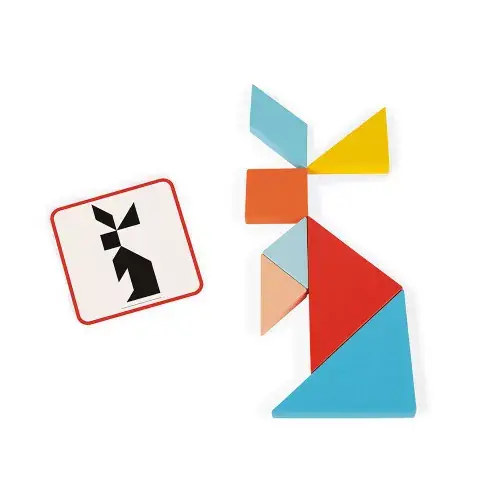 Account aanmakenWe zetten onze gedachten om in daden dankzij verschillende vormen waarmee we een object of een dier kunnen recreëren! Dit is het principe van tangram, een manipulatiespel, geïnspireerd door de logica van puzzels. Een vierkant dat in 7 stukken van verschillende maten, vormen en kleuren is gesneden, verandert in een leuke puzzel, omdat je de juiste combinatie moet vinden om de meegeleverde modellen in elkaar te zetten. Dit spannende houten spel zal alle kinderen vanaf 2 jaar verrukken. De Tangram heeft 2 moeilijkheidsgraden. Uw kind kan de tekeningen op de kaarten reproduceren door de gekleurde kant (voor de kleintjes) of de zwarte kant (voor de meer ervaren) te kiezen. Geduld en concentratie zijn nodig om alle figuren in dit tangramspel uit te voeren. Hiermee kan uw kind vormen en kleuren ontdekken en zijn concentratie ontwikkelen. Heel slim: het dienblad is voorzien van antislip siliconen voetjes voor extra stabiliteit. Dit spel bevat 25 kaarten en 7 houten stukken. De stukken zijn geverfd met water.