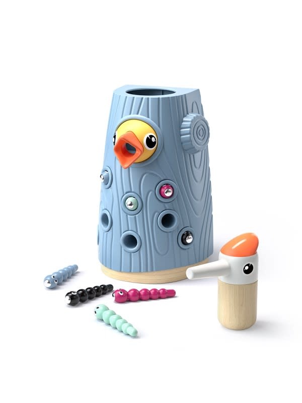 Account aanmakenVang de worm! Met het speelgoed Voed de Specht kruipen kinderen in de huid van de oudervogel en vangen ze wormen dankzij de magnetische snavel om het vogeltje te voeren. De kleurrijke wormen verstoppen zich in een boomstam. Zodra kinderen de oudervogel dicht genoeg bij de wormen houden, vangen ze de kleine diertjes dankzij de magneten. Het spel stimuleert hen ook om de eerste kleuren en getallen te leren door te spelen met de kleurrijke wormen. Voed de Specht bevordert de fijne motoriek, hand-oogcoördinatie en kleurherkenning van kinderen. Tegelijkertijd ondersteunt het rollenspel ook de ouder-kindrelatie.
