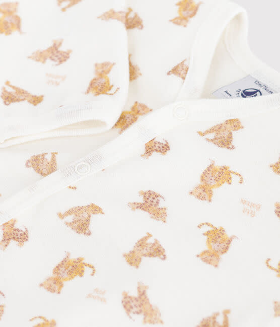 - De pyjama sluit met drukknoopjes aan de voorzijde en het kruis.