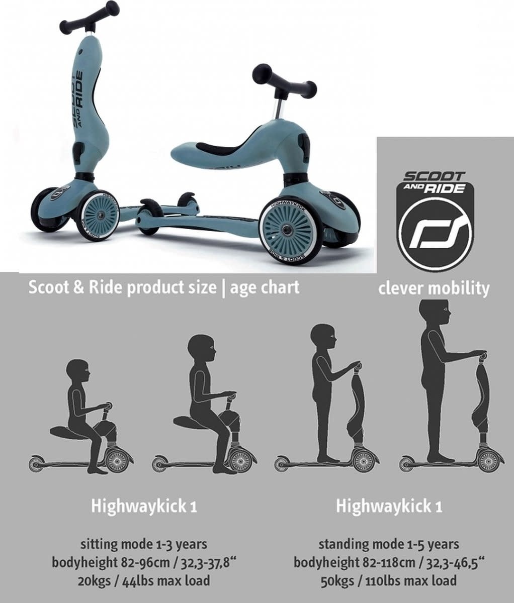 De Highwaykick zorgt voor evenwicht, dankzij de twee voorwieltjes. Daarnaast beschikt het ook over kantelbeveiliging, die voorkomt dat het fietsje naar voren kantelt. Dankzij het lage zitje zal je kindje erg stabiel zitten. De Scoot and Ride heeft daarnaast ook ergonomische handgrepen.