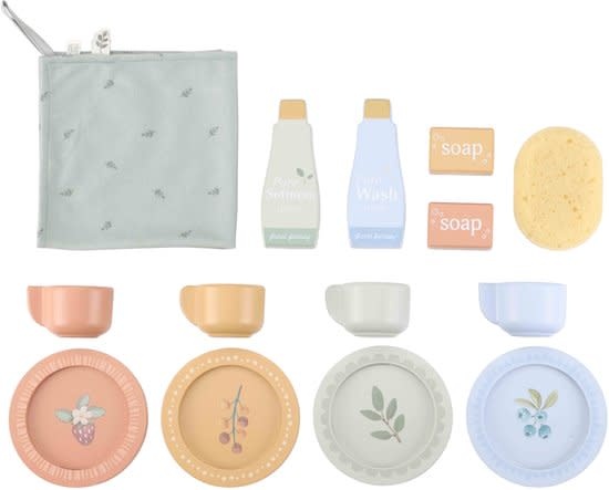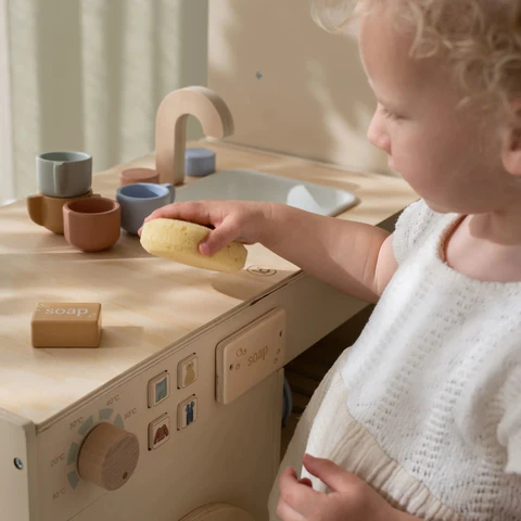 Account aanmakenMet deze houten wasmachine en vaatwasser wordt het huishouden een echt avontuur. De set is compleet met vier kopjes, vier schotels, twee bordjes, wasmiddel, zeepblokjes en een theedoek. Was de afwas in de gootsteen en geef de poppenkleertjes een frisse wasbeurt in de wasmachine. De realistische drukknoppen met illustraties en het speciale vakje voor het zeepblokje maken het spel nog leuker. Combineer de wasmachine en vaatwasser met het speelkookstation en de koelkast om een complete keukenhoek te creëren. Eindeloos speelplezier voor kleine huishoudelijke helden!
