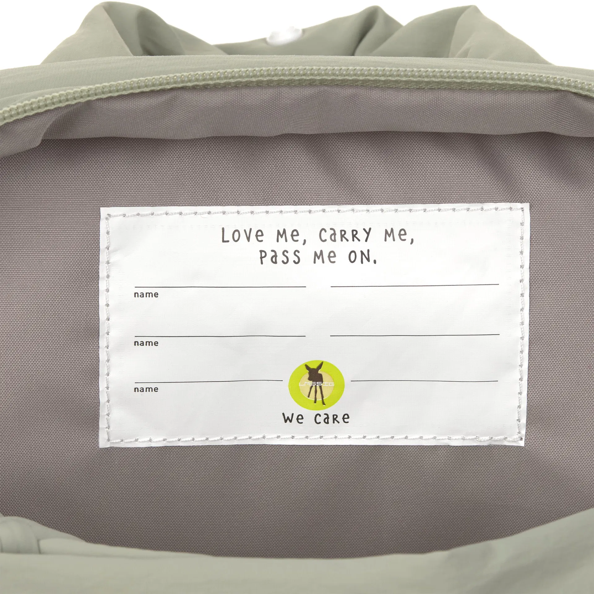 - naamlabel aan de binnenkant van de rugzak