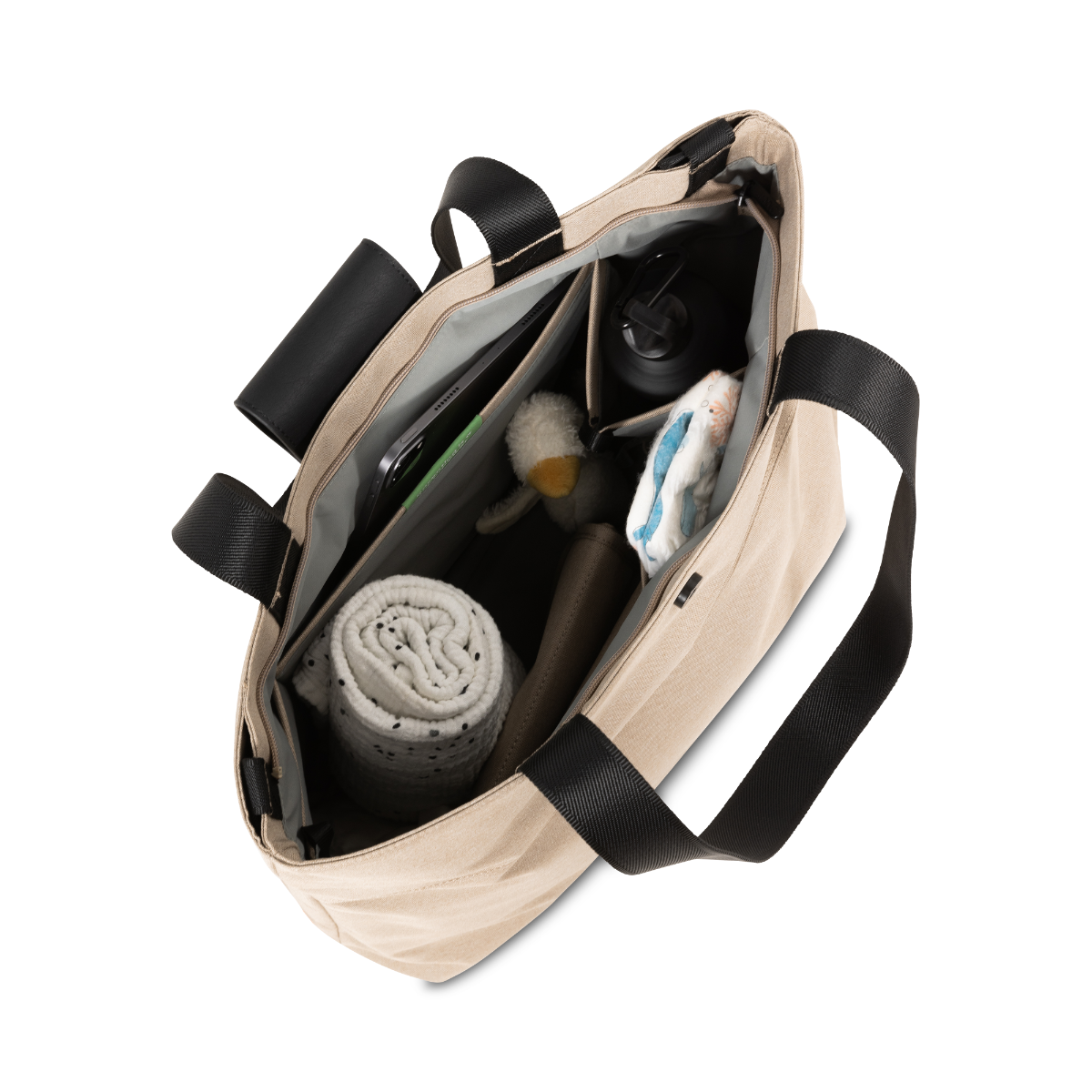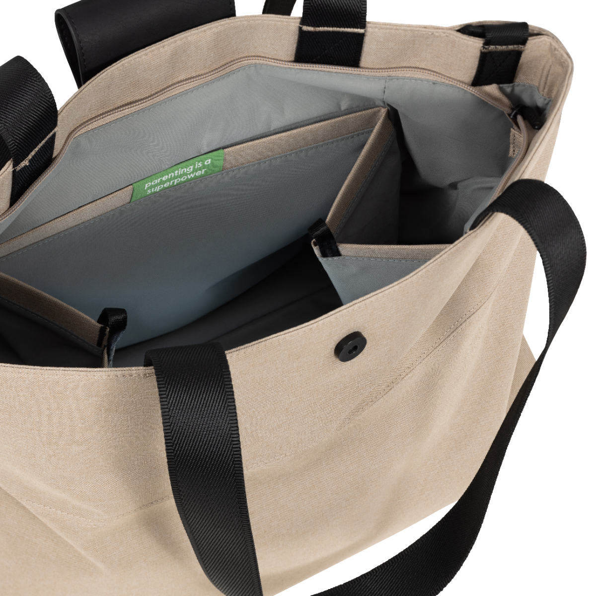 Even geen zin om de luiertas zelf te dragen? Je kunt de tas eenvoudig aan je kinderwagen bevestigen.