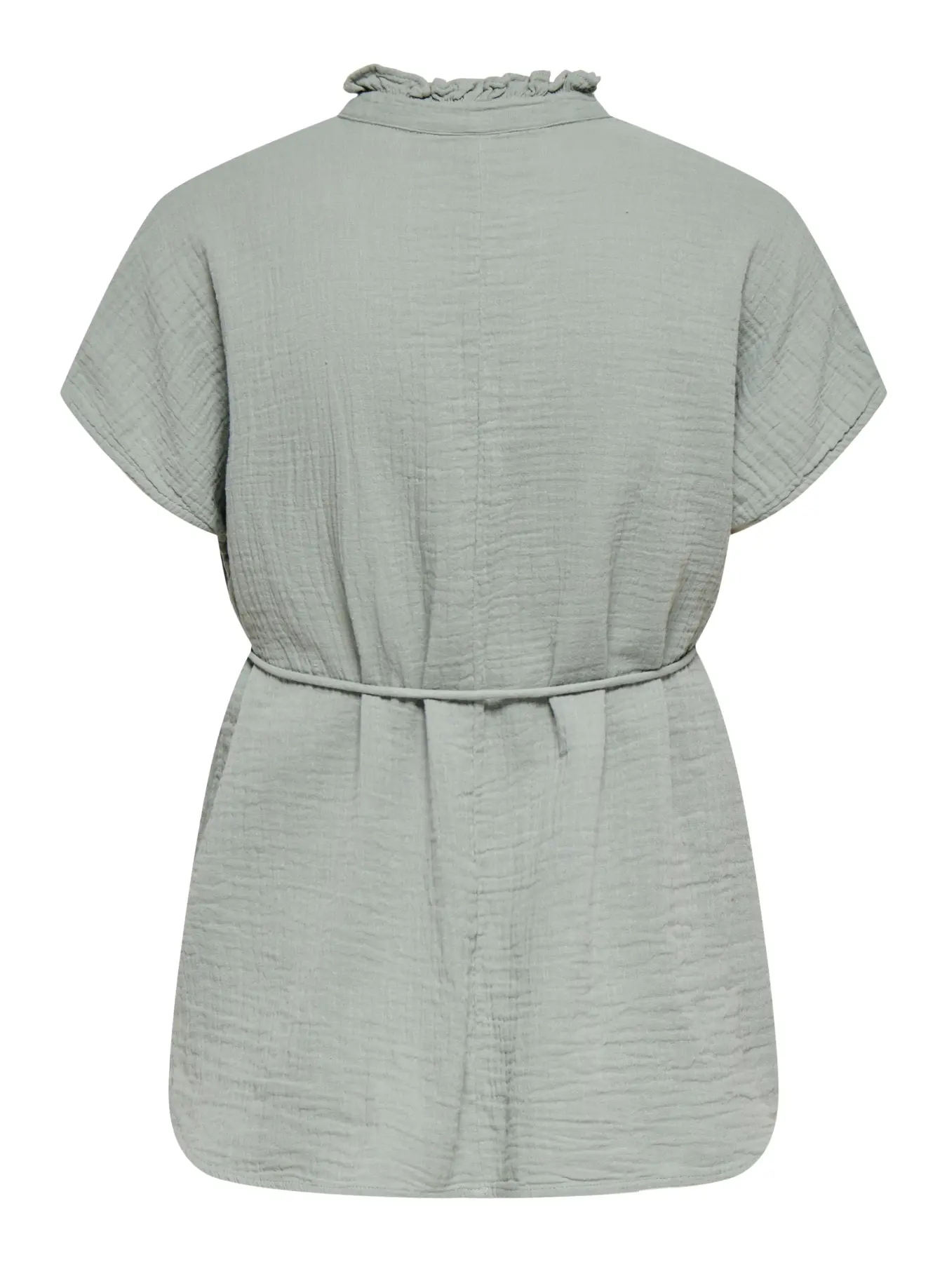 Kies je normale maat voor een flatterende look. - Producttype : Blouse - Hals : V-Hals - Mouw : Korte mouwen - Details : Riem in de taille, Zijsplitten - Pasvorm : Regular fit