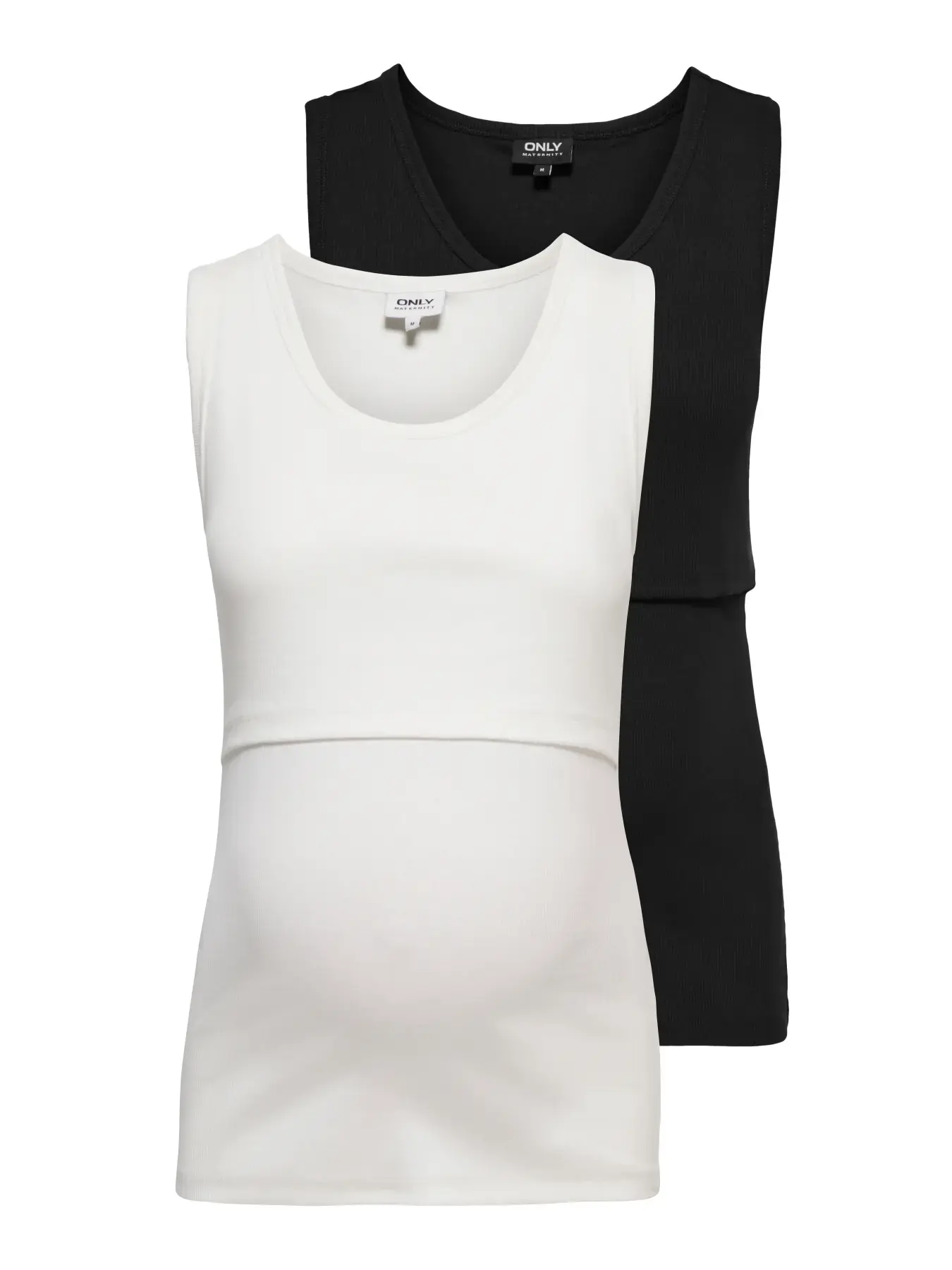 Kies je normale maat voor een flatterende look. - Producttype : Tank top - Hals : O-hals - Mouw : Mouwloos - Details : 2-pack, Makkelijk borstvoeden - Pasvorm : Regular fit