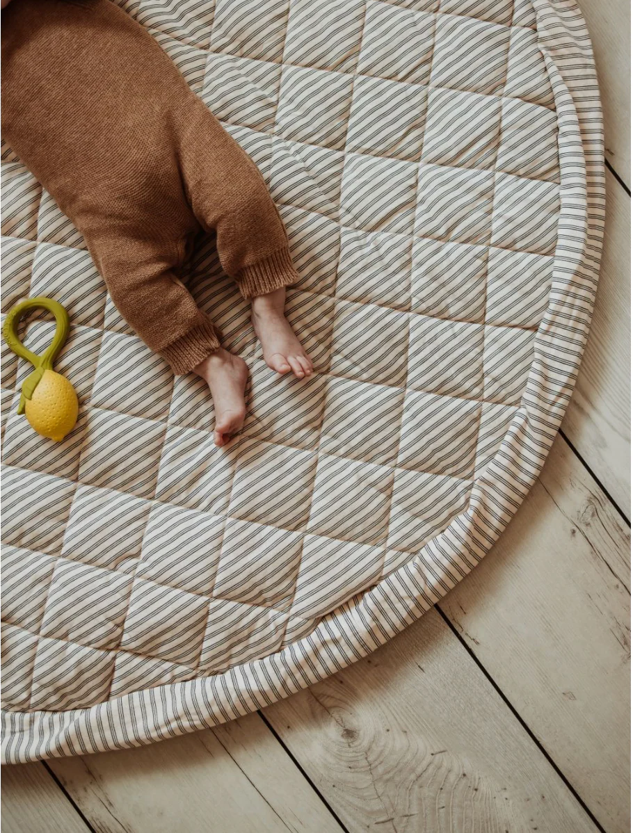 Gemaakt van GOTS-gecertificeerd biologisch katoen en zacht gewatteerd met GRS-gecertificeerd gerecycled PET, is het veilig voor je baby en vriendelijk voor de planeet. Met een royale diameter van 120 cm biedt het volop ruimte en comfort om te spelen. De 2 cm dikke vulling zorgt voor extra zachtheid en ondersteuning, ideaal thuis of onderweg.