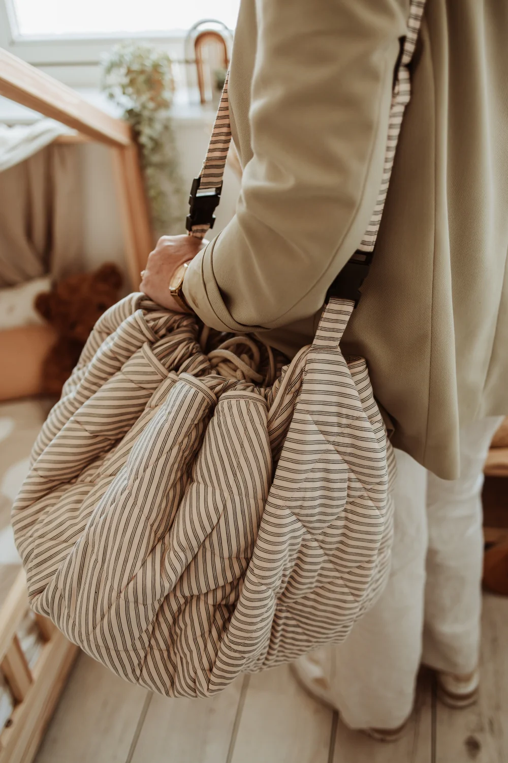 Praktisch, duurzaam en stijlvol in stripes blue – de noomad soft is een onmisbaar accessoire voor moderne ouders die comfort, veiligheid en design in één willen.