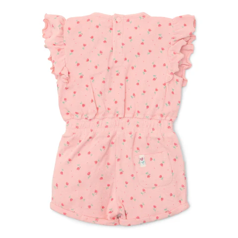Account aanmakenOntdek de Sunny Flowers playsuit voor kinderen in de kleur Blush Pink. Perfect voor na het zwemmen of op een zomerse dag, deze speelpak is gemaakt van 100% organisch katoen in zachte terry badstof voor ultiem comfort. Het vrolijke bloemendessin in het thema van de collectie zorgt voor een speelse uitstraling. De ruches langs het lichaam voegen een charmante touch toe, waardoor dit pakje een favoriet zal zijn voor elke zomerse activiteit.