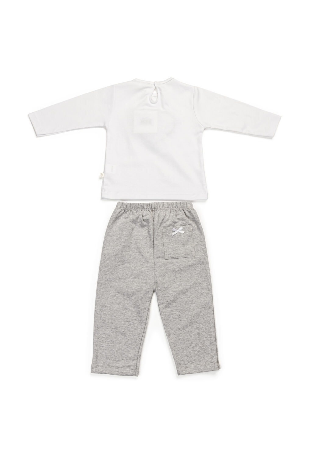 Witte hoge kwaliteit T-shirt met lange mouw, broek in grijze italian fleece jersey