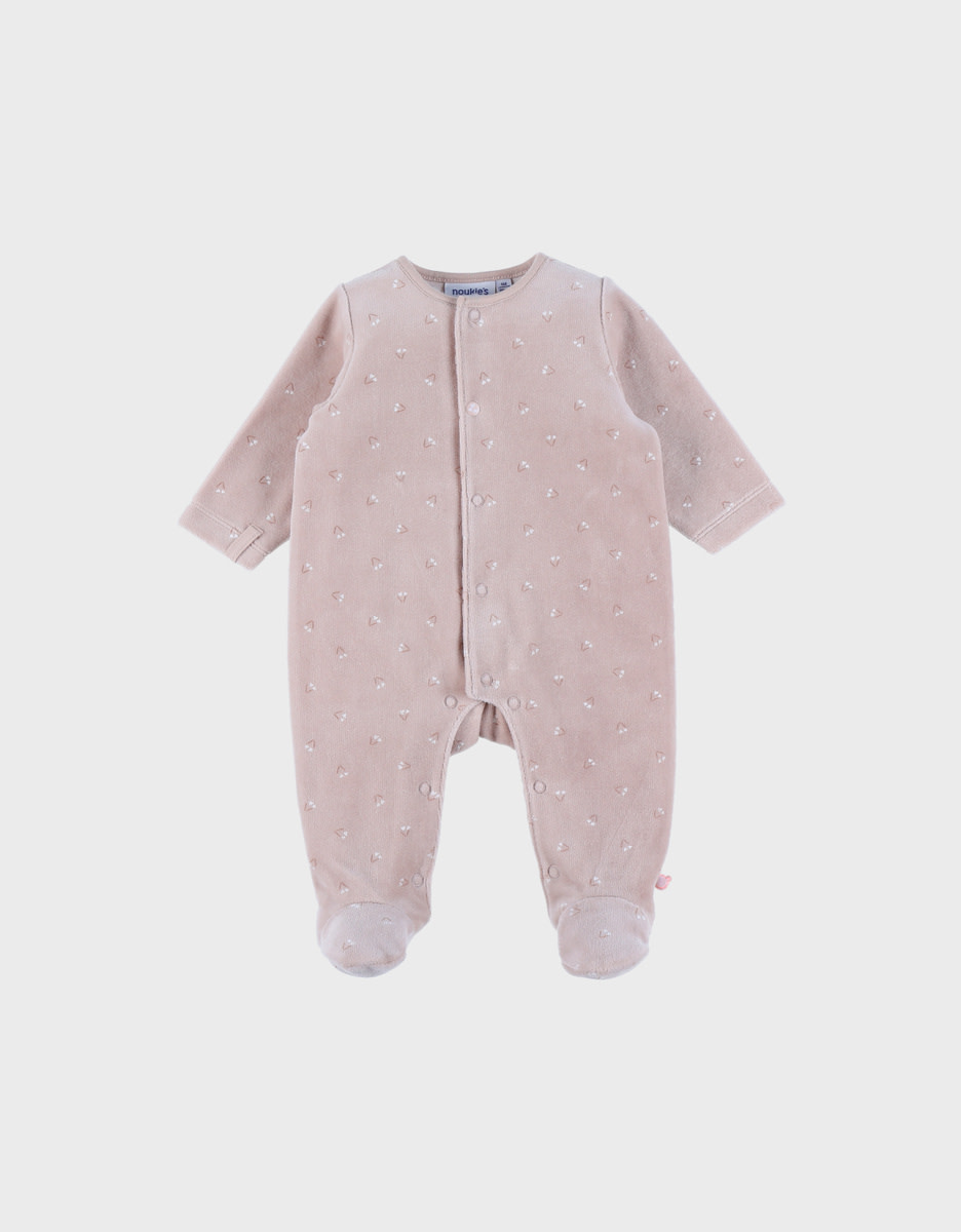 Roze velours baby pyjama - Nappy Cat