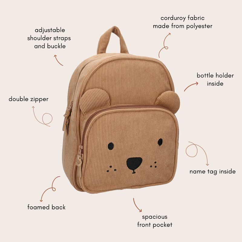 Account aanmakenDeze rugzak van Kidzroom uit de 'Beary Excited' collectie is helemaal trending. Deze bruine tas is van ribstof gemaakt van polyester. Het voorvak is in de vorm van een teddybeer en heeft zelfs oortjes en een gezichtje! Verder sluit zowel het hoofd- als voorvak met een dubbele rits. Ook is er aan de bovenkant van de tas een handige lus. De schouderbanden en buckle zijn op maat te verstellen!