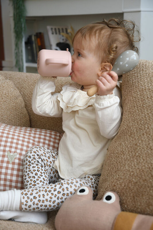Account aanmakenDe siliconen leerbeker is ontworpen om de onafhankelijkheid van peuters tijdens de maaltijden te bevorderen. Deze beker bestaat uit twee handvatten en een afneembaar tuitdeksel en helpt kinderen zelfstandig te leren drinken. De ergonomische handvatten met brede handvatten maken het voor het kind gemakkelijker om vast te houden, waardoor het gebruik van de beker eenvoudig en comfortabel wordt. De zachte punt is speciaal ontworpen voor vroeg leren. Het luchtdichte en afneembare deksel biedt dubbele functionaliteit: het beschermt de inhoud van de beker, voorkomt lekken en laat het kind, eenmaal verwijderd, leren drinken als uit een glas, terwijl het de handvatten gebruikt voor een betere stabiliteit. Deze beker is gemaakt van hoogwaardige siliconen van voedingskwaliteit en is onbreekbaar, perfect geschikt voor dagelijks gebruik door kinderen. Het is gegarandeerd zonder BPA*, PVC of ftalaten, waardoor de veiligheid van uw kind wordt gegarandeerd. Voor onderhoud kan het met de hand worden gewassen of in de vaatwasser voor meer gebruiksgemak.