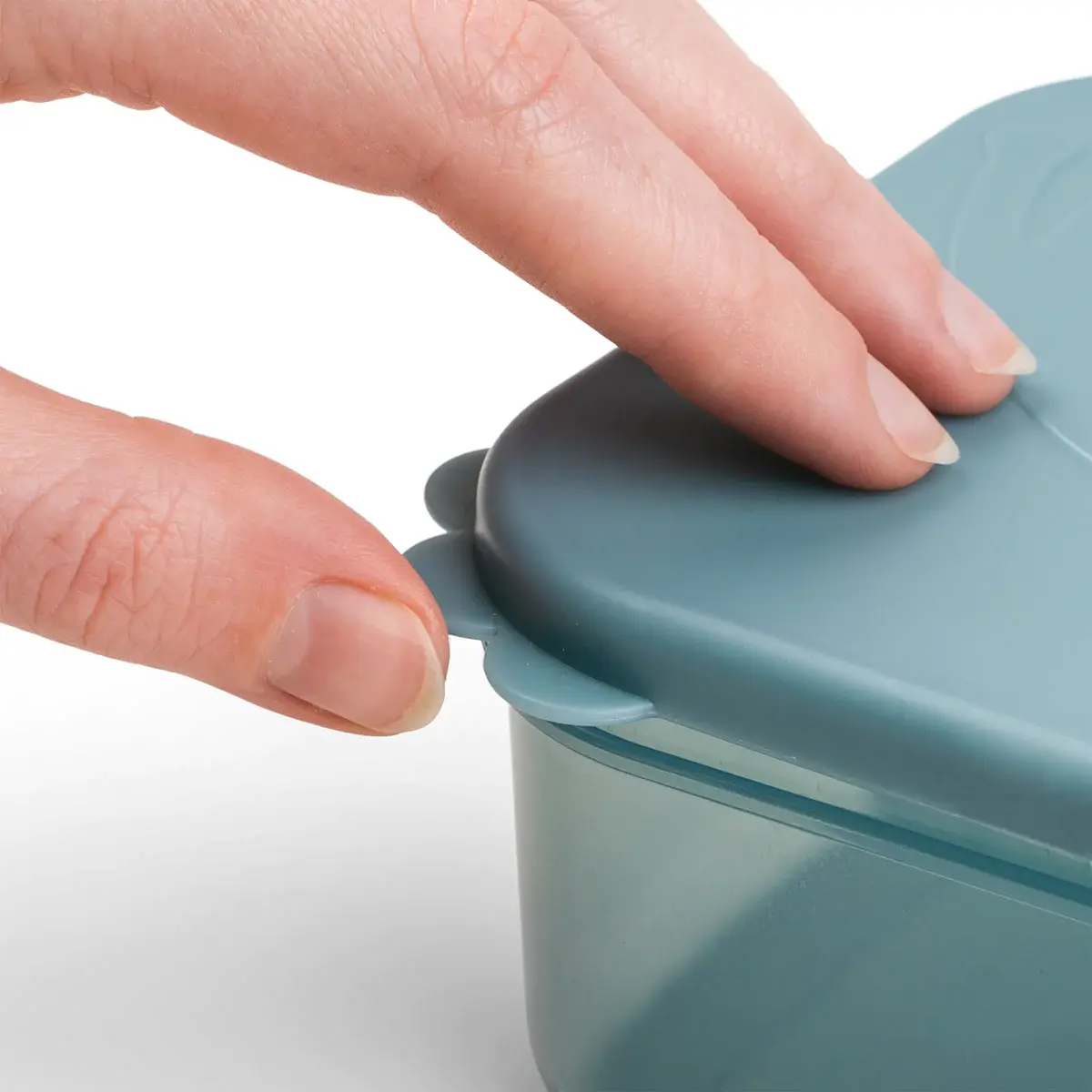 Lovely blue colours and embossed with our cute Elphee • comes in three sizes, 540 ml, 370 ml & 240 ml • has sweet Croco scales for easy opening • dishwasher safe and suitable for use in the oven, microwave and freezer