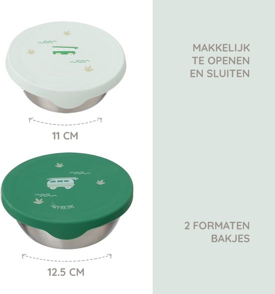 De Fresk snackboxset bevat twee verschillende maten, waardoor je altijd een passende snackbox hebt voor fruit, rauwkost, koekjes of kleine maaltijden. Dit maakt de set ideaal voor zowel school als onderweg.