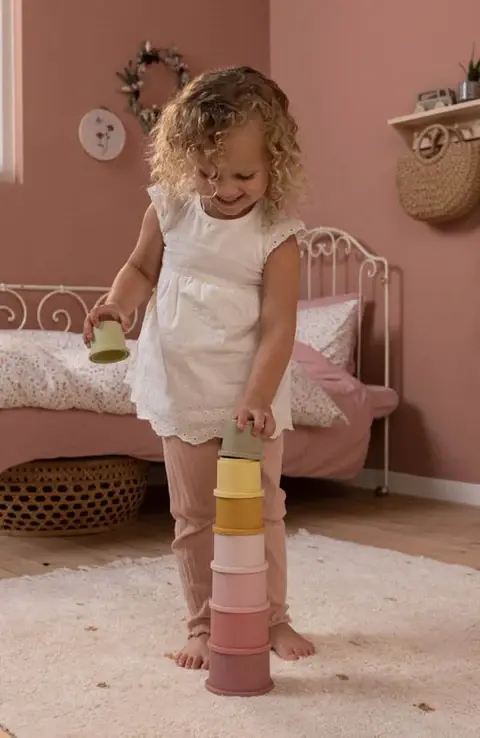 1,2,3 hoe hoog wordt de toren?! Deze set met bekers daagt je peuter uit om ze één voor één op elkaar te stapelen. Hoe groot zal de vreugde zijn als de toren helemaal staat! En hoe leuk is het om de toren weer om te gooien! Uren speelplezier gegarandeerd. Met de vier vrolijke tinten zullen de bekers je kleintje zeker vermaken. De 8 stapelbekers hebben een nummer aan de bovenkant en passen gemakkelijk in elkaar om te voorkomen dat de toren te snel valt. Je kleintje leert over cijfers en ontwikkelt fijne motoriek. Stapel en maak de toren in de box, op de vloer of in de badkuip of zandbak. Dankzij het veelzijdige materiaal kan het overal worden gebruikt. Plaats de kleine bekers in elkaar om ze eenvoudig op te bergen.