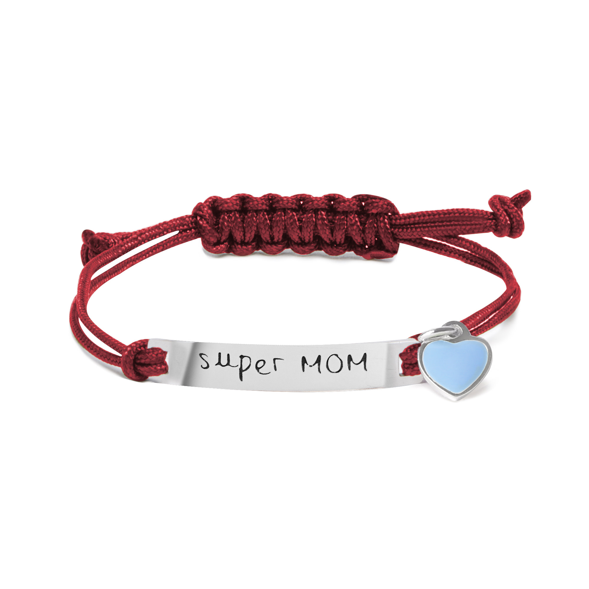 De MAMIJUX® TAG-armband is gemaakt van staal. Het heeft een gegraveerd schrift en een geëmailleerd hart.