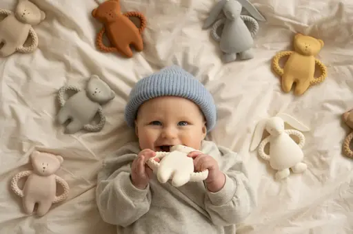 Hygiënisch: De bijtring is van nature resistent tegen bacteriën en schimmels, wat zorgt voor een hoog niveau van hygiëne. Het is gemakkelijk schoon te maken, waardoor het een praktische keuze is voor ouders.