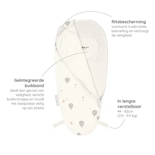 Het gevoel dat de baby binnenin het slaapzakje ervaart, stelt de baby gerust. Het voelt zacht en warm; het doet denken aan al die tijd bij mama in de buik. De armpjes zitten binnen in het slaapzakje. Zo kan de baby zichzelf niet meer wakker slaan.
